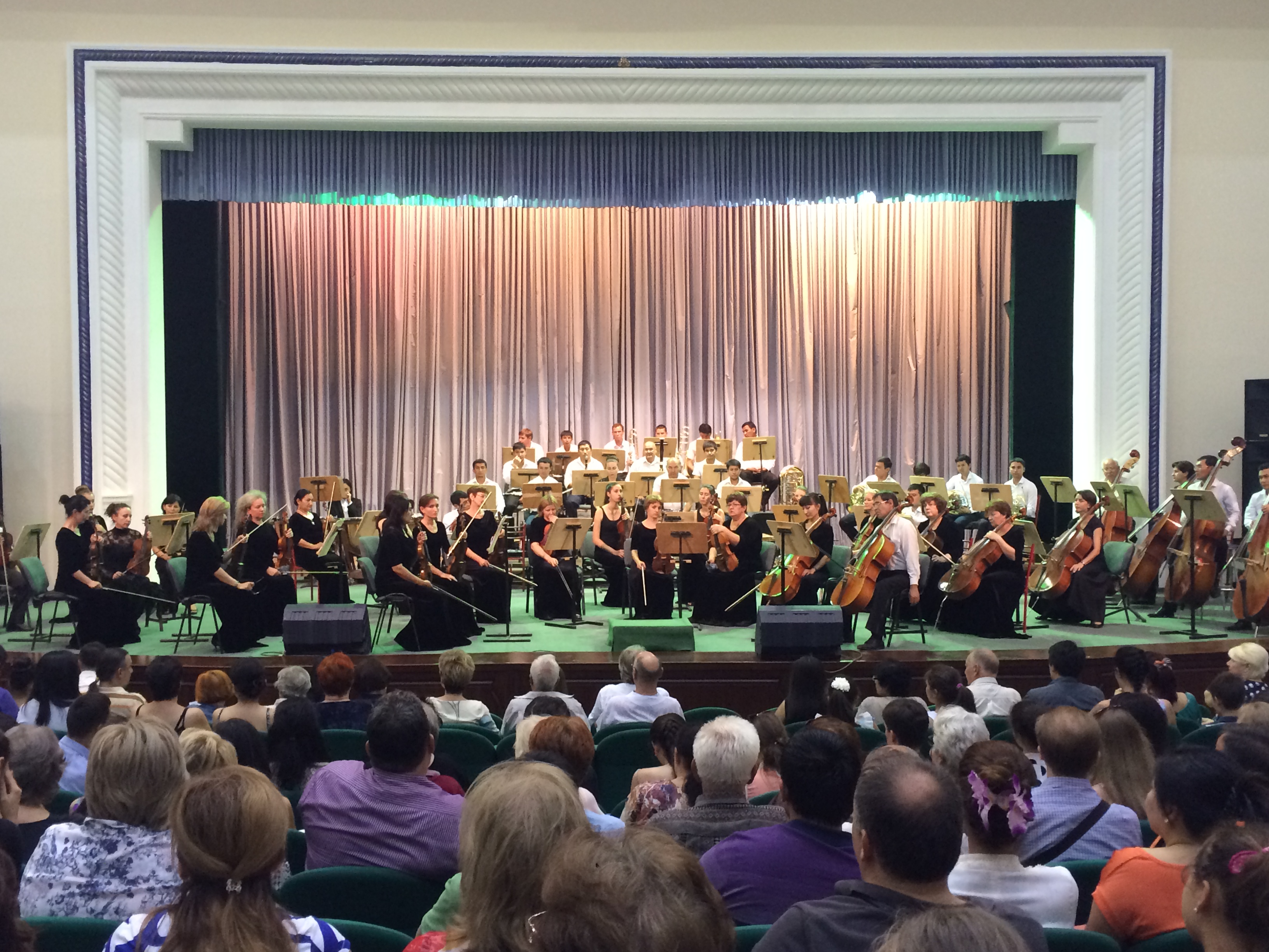 On Friday, June 12, I went to the Tashkent State Conservatory of Music with a few colleagues to hear Tchaikovsky’s symphony No. 5 and Concerto No. 1 for piano. It was sweltering inside the auditorium, and I immediately noticed that most of the women in the room had lovely, colorful handheld fans. (Note to self: Purchase silk or paper fan ASAP!)