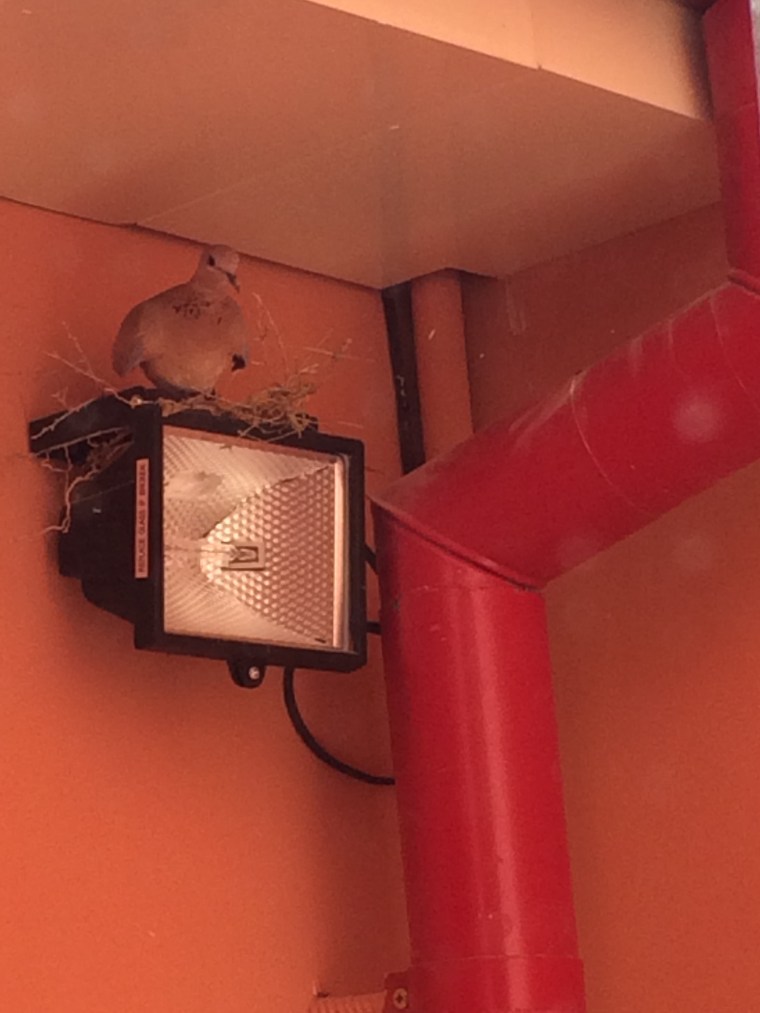 And speaking of nesting, I’m awaiting online orders of more bedding and appropriate linens for my formal dining room. Then yesterday as I was sitting on the couch in my home office reading – quite by chance – I glimpsed this backyard scene through the window: