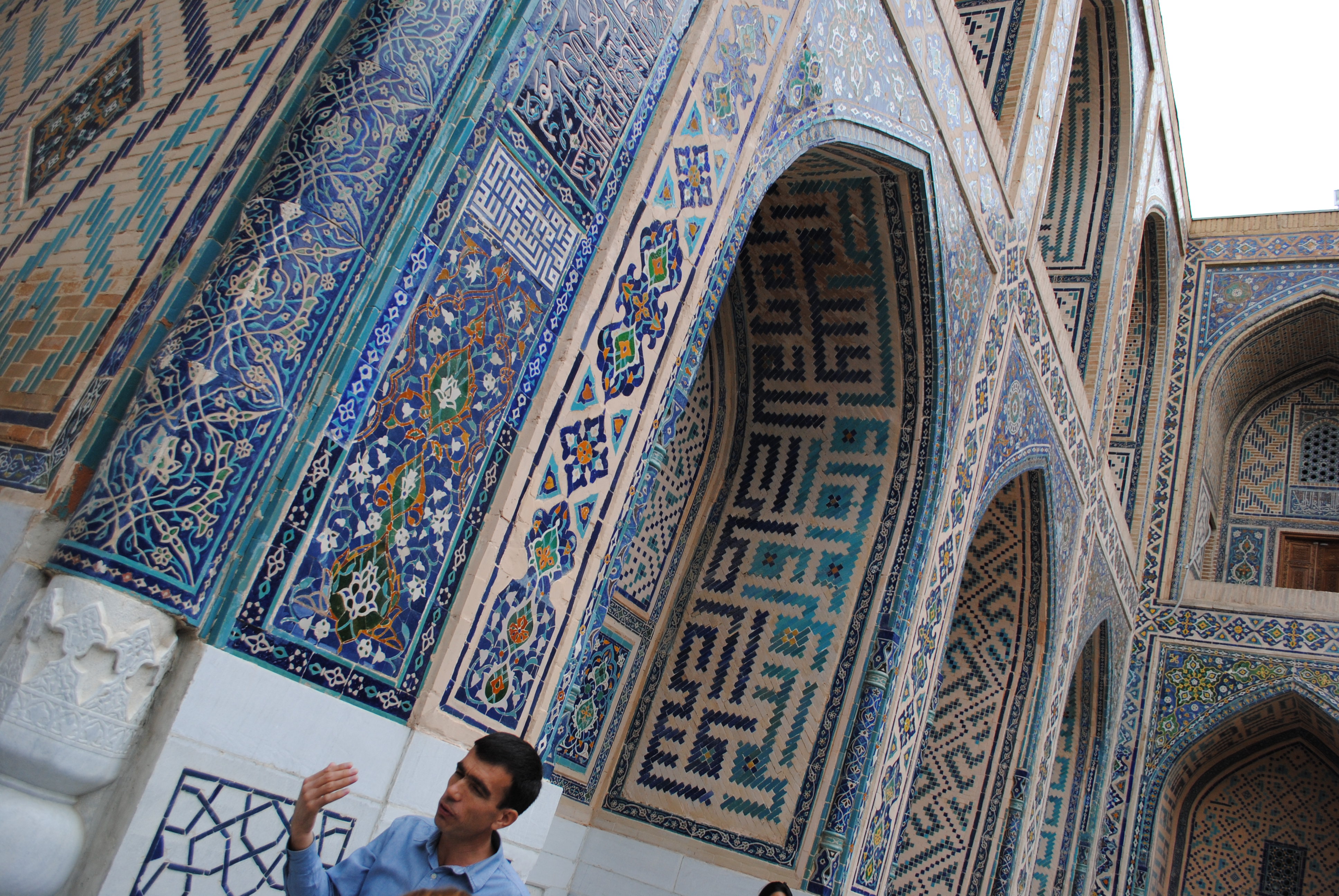 Ulugh Bek’s madrasa is the oldest, and his love of astronomy is depicted by stars in the mosiac tilework.