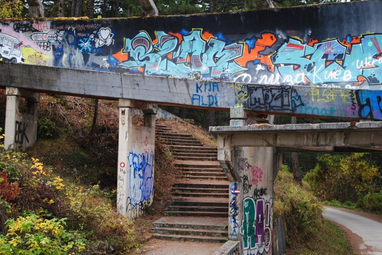 The following four pictures hail from the site of the 1984 Winter Olympics, hosted by the city of Sarajevo when it was part of Yugoslavia. The abandoned, damaged areas are both sad, and eerie. Some are thought to have been strewn with landmines during the conflict in the 1990s, so we were cautious about where we went.