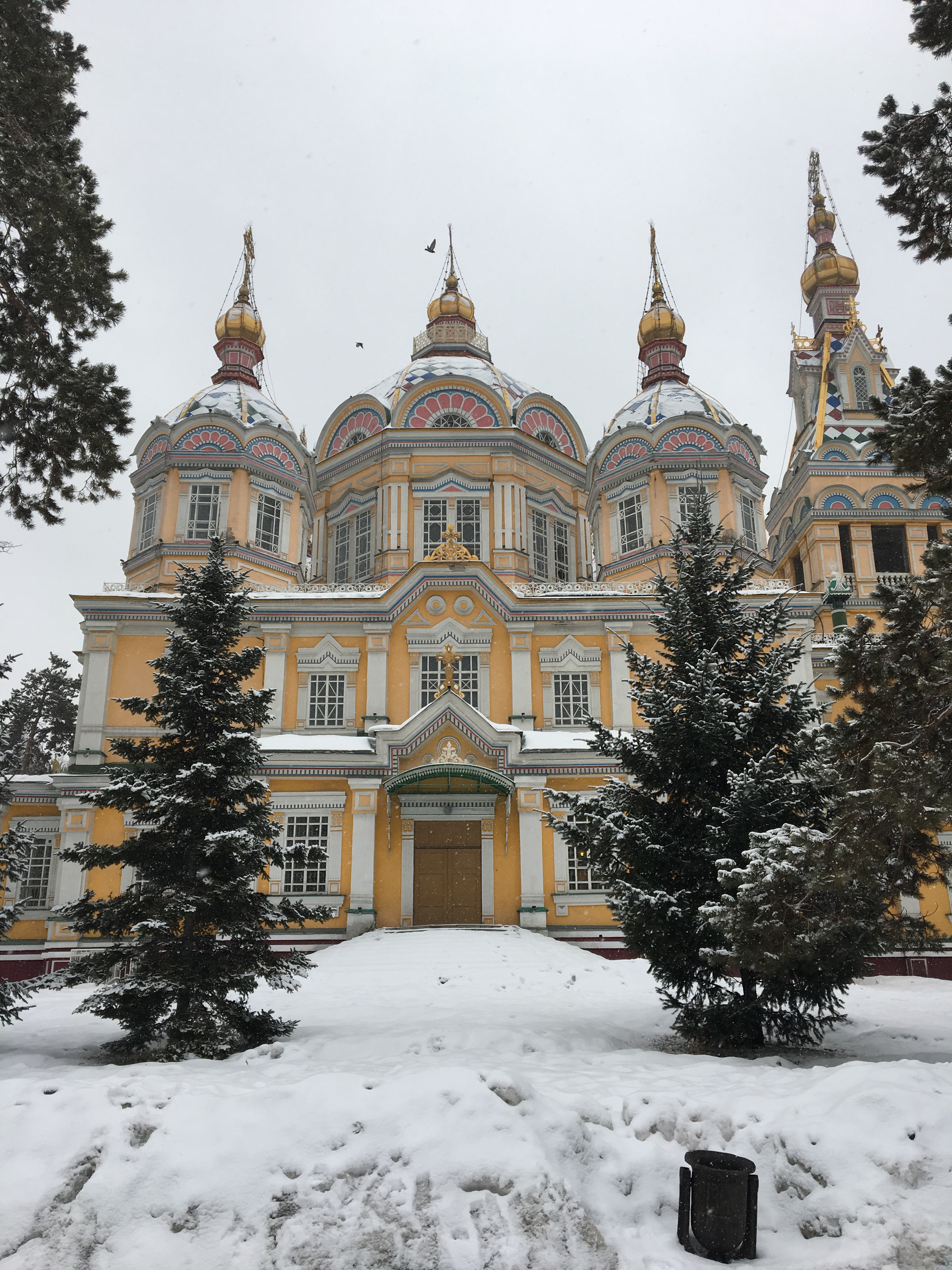 We left there and took a cab downtown to see Zenkov’s Cathedral, otherwise known as Ascension Cathedral (Вознесенский собор). The church, built in the early 1900s, is located in Panfilov Park and is entirely wooden. I was really looking forward to seeing this colorful cathedral in winter.