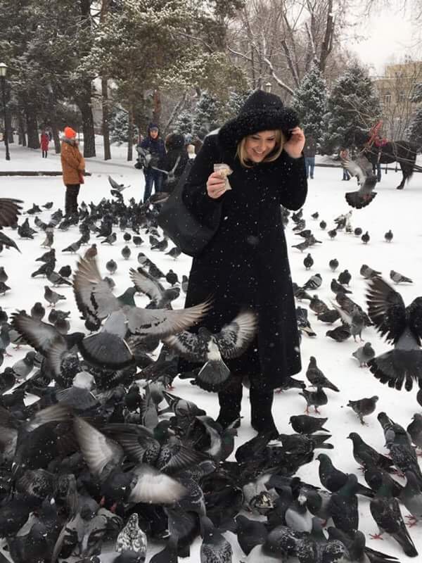 Before going inside, we spared a few tenge for birdseed to feed the pigeons, which quickly got a little out of hand.