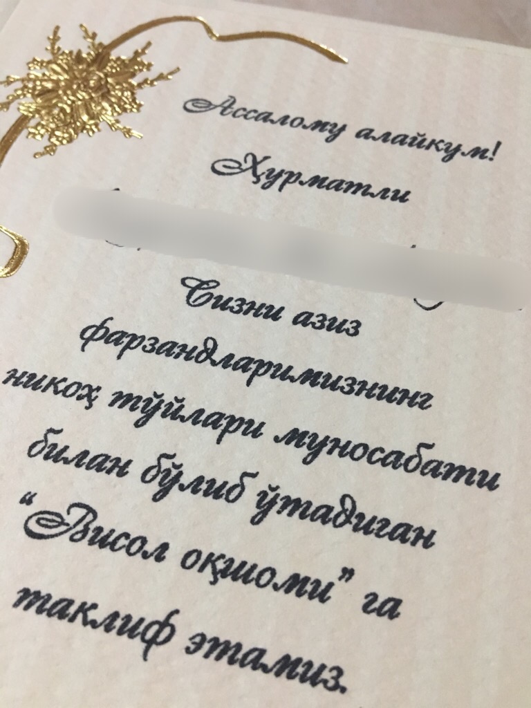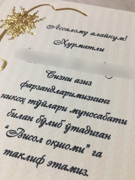 Next month will make two years that I’ve lived in Uzbekistan. In the course of my work here on immigrant and “green card lottery” cases, I’ve looked at literally hundreds of Uzbek wedding photos, submitted to bolster the bona fides of a relationship. I’ve seen the dresses, the festive and colorful tables, and the giant plates of plov. But literally every Uzbek I know is already married. In fact, my Uzbek colleagues who are the same age as I am have children who are now preparing for university. That is probably why I’ve never actually received an invitation to an Uzbek wedding. But a couple of weeks ago, one of my colleagues A., walked into my office and asked me what I was doing on April 14.