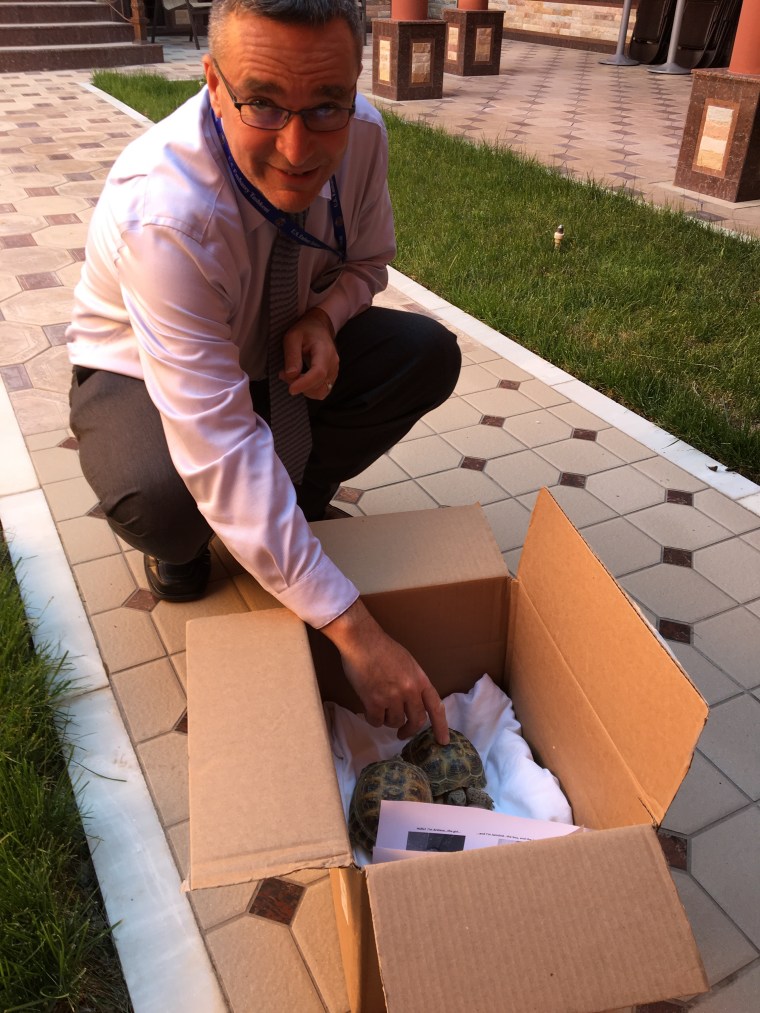 The past couple of weeks leading up to now have been busy. After we returned from the Aral Sea, we faced an event that was both happy and sad. The happy part was that we found a new home for our tortoises Jamshid and Arslana – with an American family who will be in Tashkent for the next three years. The sad part was that we had to let them go on Friday, May 19. And we have been glancing into the front yard expecting to see them ever since. On the up side, their new yard has dandelions, and a pine tree to hide under, so I bet they’re happy there. Whoever keeps the food coming, right?