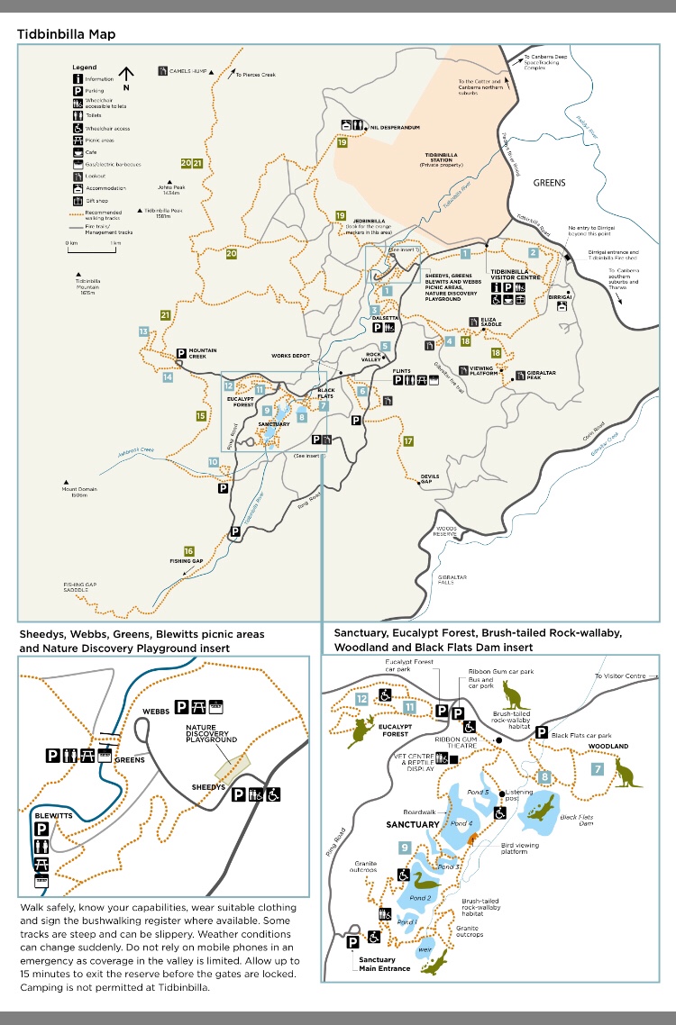 If you head out to Tidbinbilla, be sure to grab a trail map at the Visitor Centre, and bring your bug spray. During the 3-4 hours we visited, we had to douse ourselves with bug spray at least once an hour to keep the maniacal biting flies away, and it was worse near water. Also, camping is not permitted, and there are no rubbish bins, so pack it in, pack it out.
