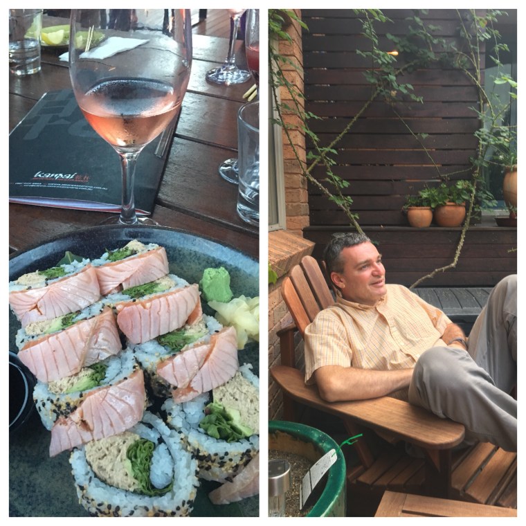 After several hours at the beach, we cleaned ourselves up, enjoyed our deck for a little while, and then met our friends for dinner at what has to be the best Japanese restaurant on the entire south coast, KanPai in nearby Huskisson. The rainbow maki was to die for! In fact, the service was outstanding and every dish and drink we ordered was delicious and beyond expectations. Highly recommended if you’re in Jervis Bay! (As the Aussies say, bookings are essential.)