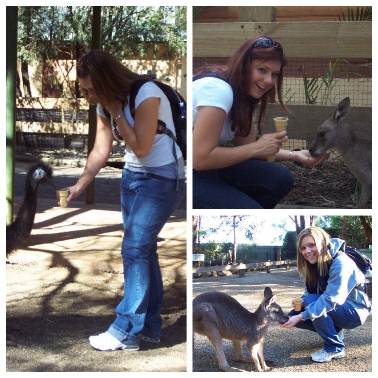 Counter-clockwise from top right: me enjoying Featherdale in December 2005, April 2006, and June 2006.