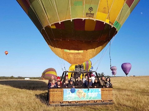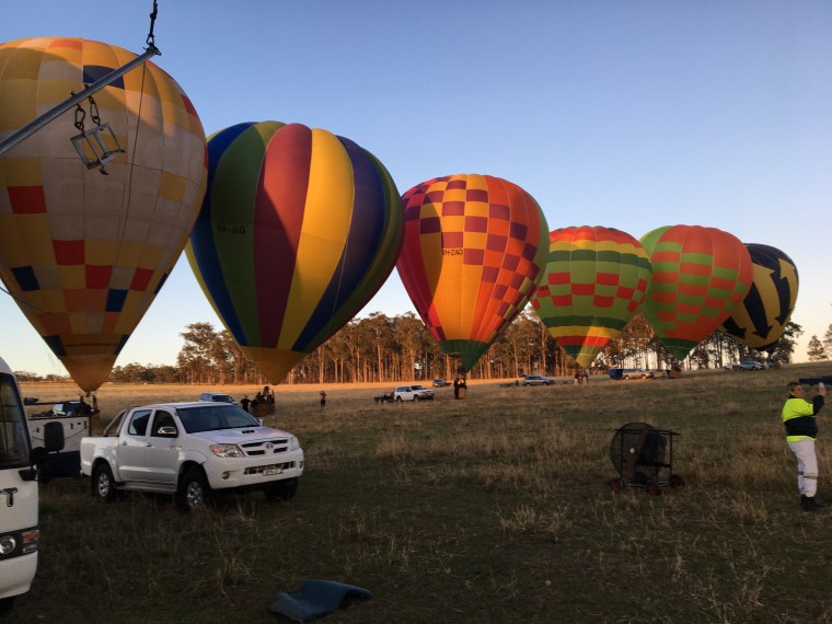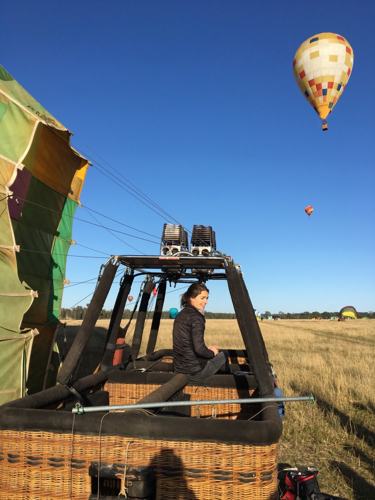 This past May when V and I went to the Hunter Valley Food and Wine Festival, I saw a flyer for a hot air balloon fiesta to take place at September’s end. March was our first hot air ballooning experience in Canberra, an experience we both wanted to do again. So I bought our fiesta tickets almost as soon as we returned home, in anticipation of celebrating our fifth wedding anniversary in a hot air balloon over vineyard country. And last weekend, we did just that.