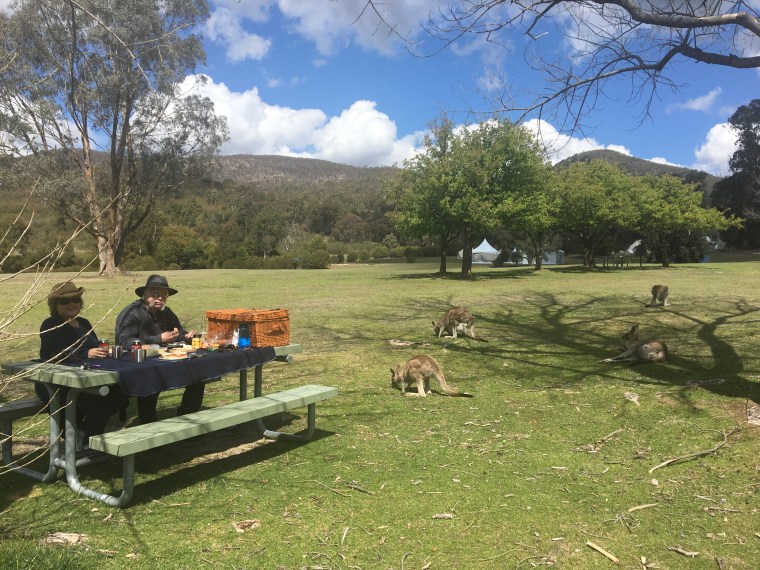 The following day, we had a picnic at one of my favorite places in Canberra – Tidbinbilla Nature Reserve. And, we were joined by these guys! And yes, they were as close as it looks.
