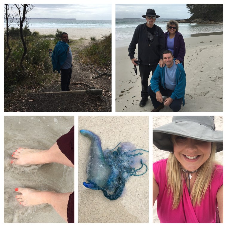 The following day, we visited nearby Blenheim Beach, Bateman’s Bay, and historic Braidwood on our way back to Canberra. My dad was surprised at all the dead blue bottle jellyfish on the sand, remembering my exceedingly unpleasant encounter with a live cloud of them attaching to my waist in late 2005. But these were harmless.