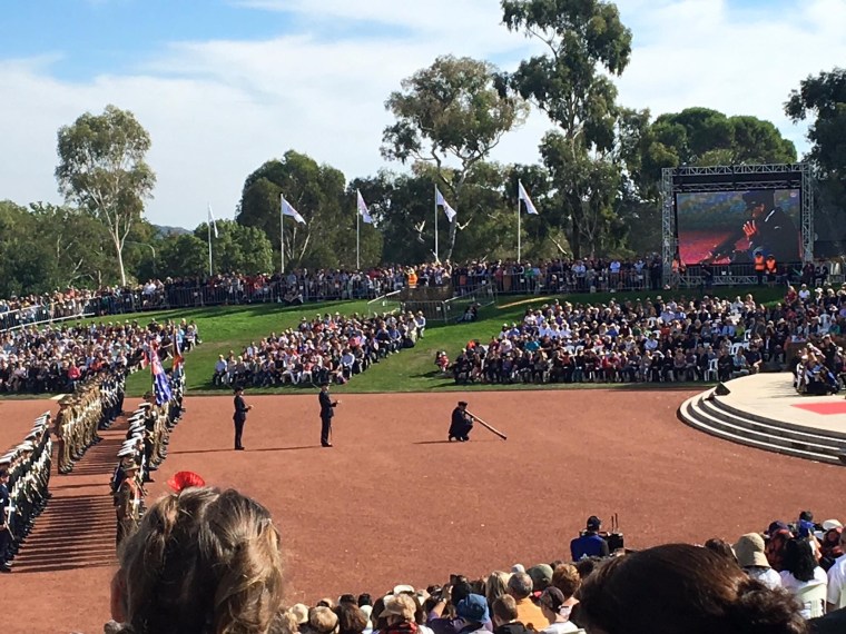 Last year V and I attended the National Ceremony remembrance service held here in the capital, at Canberra’s Australian War Memorial. It began, as they do across Australia, with a male service member of Aboriginal heritage playing the digeridoo.
