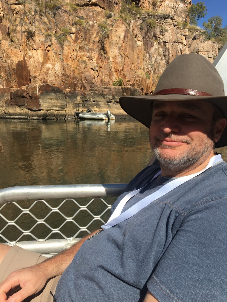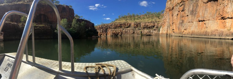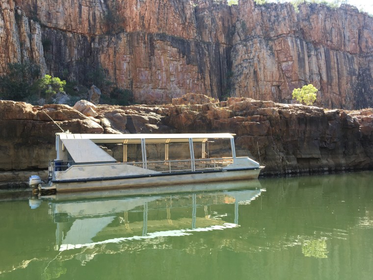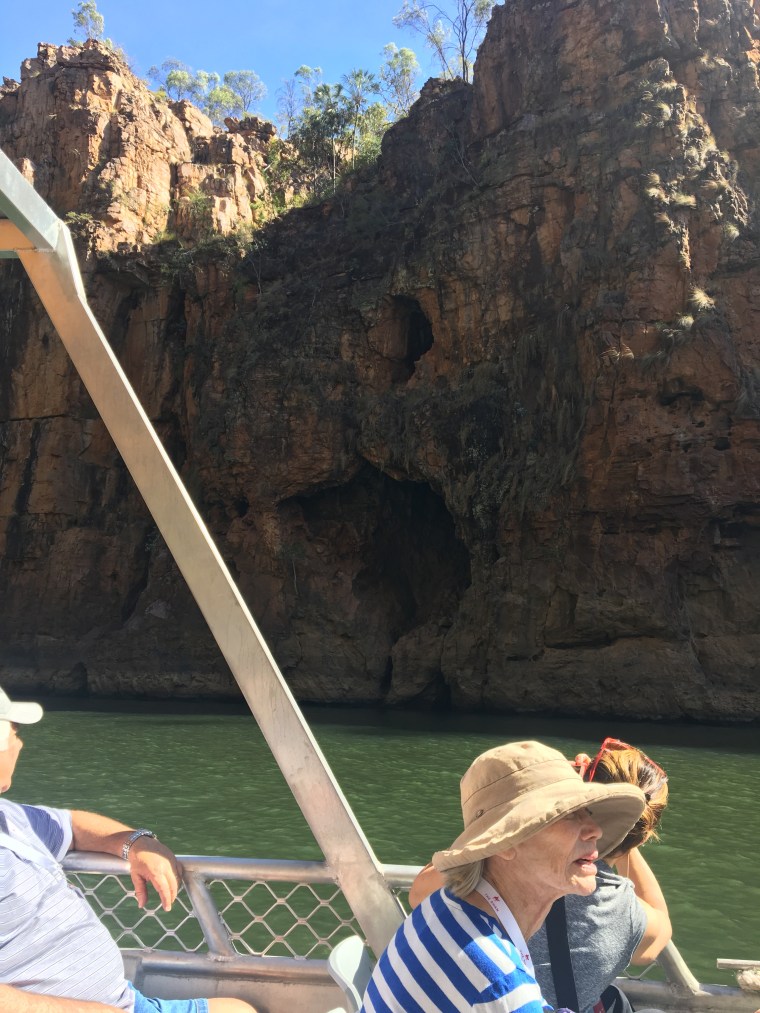 After a leisurely breakfast, we arrived at the town of Katherine. Katherine is the fourth largest settlement in the Northern Territory. We had a choice of activities for an off-train excursion, and we’d elected to do a river cruise of the Nitmiluk Gorge. The gorge is located in the 1,127 acre Nitmiluk National Park, jointly managed with the Jawoyn people, traditional owners of the land.