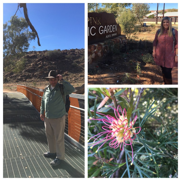 We spent the eighth day of our Ghan train trip in Alice Springs, the geographic heart of Australia. “The centre of the centre.” We weren’t catching the Ghan north until dinnertime, so we had a full day to explore this spirited Outback town with a population of nearly 25,000. Even with our limited time, we managed to walk through the botanic gardens, see the Royal Flying Doctor Service and Telegraph Station Historical Reserve, take photos from the top of Anzac Hill, visit a pharmacy, and even eat a couple of sit-down meals.