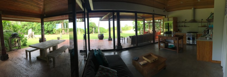 Then we arrived at our AirBnB cottage, complete with outdoor shower/dining room/lounge and private beach: