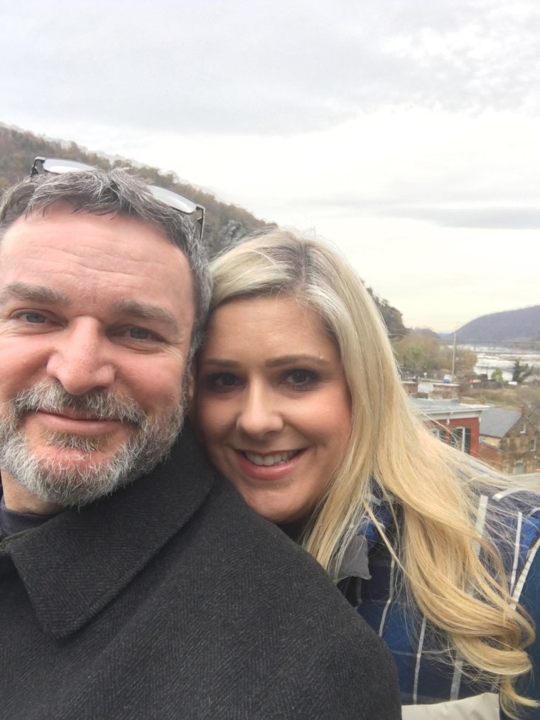 Enjoying hot chocolate and hot apple cider on a cool autumn day in Harpers Ferry, WV