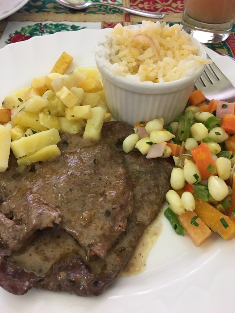 Since classes ended at 13:00, we often had an hour before the next activity in which to take advantage of the almuerzo ejecutivo (executive lunch) various restaurants would offer to busy downtown workers. Usually a prix fixe, the meal would consist of a soup or ceviche, a meat, rice, vegetable or fruit, and a dessert. I adored the sides of hot sauce or onions to give the food a little extra kick.