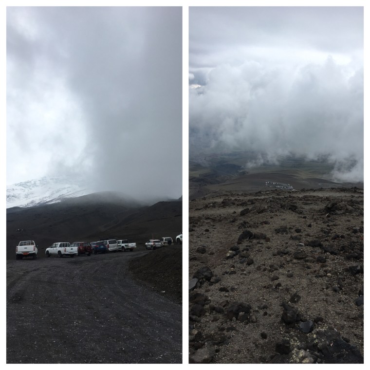 Left: Looking up Cotopaxi from the parking lot / Right: Looking back down at the parking lot from not even halfway up
