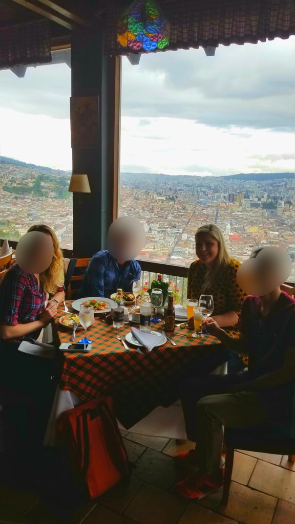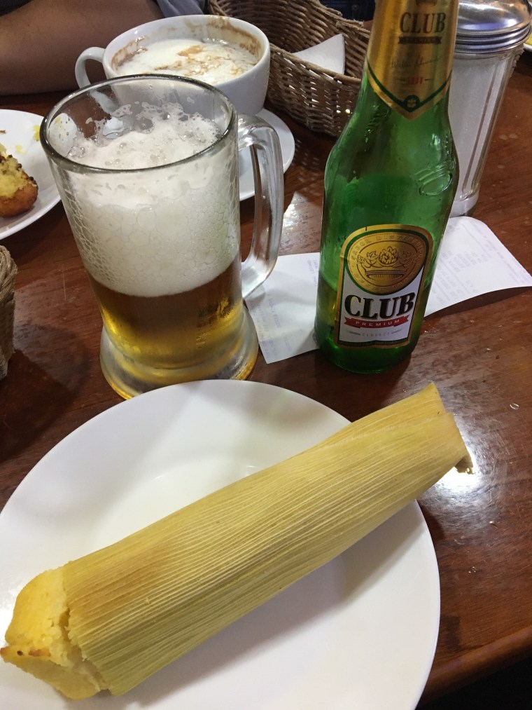 We also found a swing set and had to give it a whirl – who doesn’t love to swing at 13,000 feet? It made me feel kind of light and weird. Looking at Quito so far below, I fought the inexplicable urge to launch myself off. Afterwards, we saw some lightning and decided to beat the storm back down. While my colleagues enjoyed some hot chocolate and empanadas, I went for an Ecuadorian favorite – humita especial con queso – or steamed corn cakes with cheese. And of course… cerveza local.