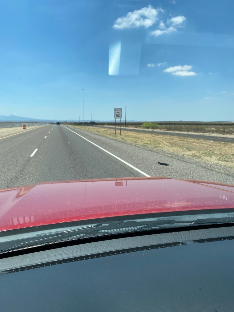 We woke up early Friday morning, showered, ate breakfast, reloaded the cars, and got on the road around 09:00. It was to be the biggest driving day yet – not because of the 450+ miles, but because we would meet our social sponsors and cross the border into Mexico, at last, almost three months later than we had originally planned to arrive at Post. (My transfer eligibility date, or TED, was for May, which technically means anytime between April 1 and June 30, but of course the pandemic had cancelled our April 25 move.) As we didn’t want to arrive in the dark, or spoil our sponsors’ family dinnertime, we were prepared to really haul ass in the final push.