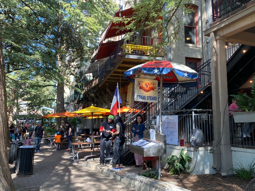 After I finished my self-tour at the Alamo, I went across the street to a visitor center to find a bathroom and stumbled upon an entrance to the Riverwalk (Paseo del Río). I ended up walking for a couple hours around its twists and turns, enjoying seeing people eating in sidewalk cafes and restaurants, ducks and their ducklings paddling on the river, and boats lazily drifting by. It was a warm day for November, but the shade and water made it feel refreshing. I didn’t walk the whole 15 miles of the Riverwalk, but I did enjoy being right downtown. It almost had a European feel, but with a strong sense of the U.S. and of course, Texas.