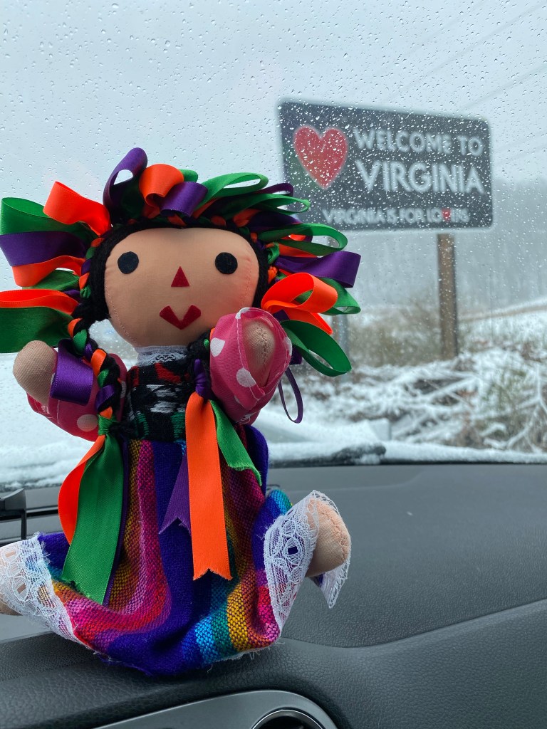 V had no interest in selfies at the state line because winter is not his jam. I however had a huge emotional reaction at finally arriving in Virginia and stayed out there long enough that he motioned gently it was time to remove ourselves from the shoulder. Arriving in Virginia was the signal to me that my tour was over, even more somehow than departing Mexico had been. Departing Texas had felt pretty final, but coming back home to Virginia was the definitive start of something new. We have these moments, although it takes months or sometimes years to put shape and definition to them. What it will be we haven’t yet created, and maybe it was that hopeful feeling I was having again, mixed with sadness for the hope I felt when we last left Virginia, mixed with relief that one difficult chapter of my life has ended.