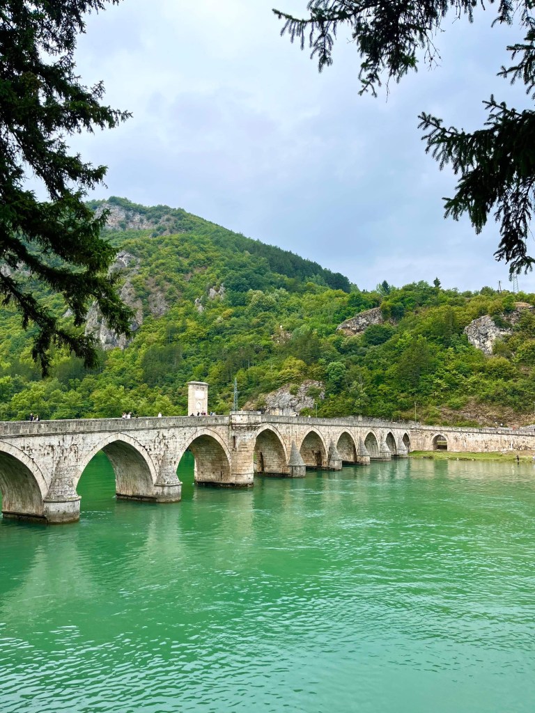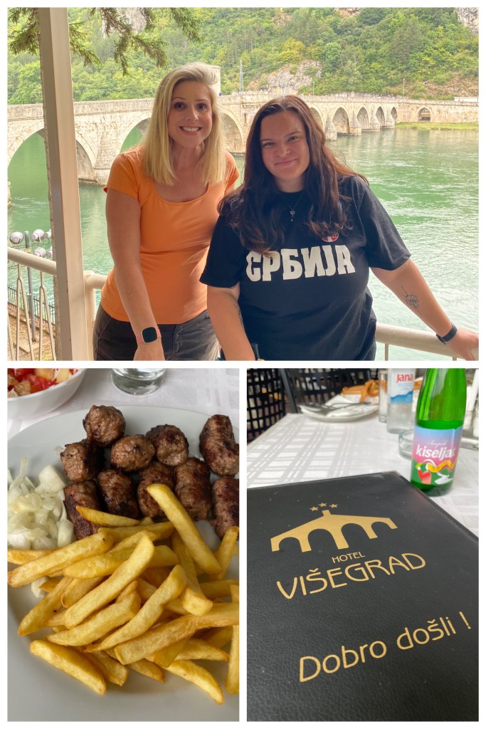We got to Višegrad, found a parking spot, and enjoyed a delicious outdoor lunch at the Hotel Višegrad, along with scenery of the Mehmed Paša Sokolović Bridge over the River Drina. The bridge, completed in 1577 during the Ottoman Empire, became a UNESCO World Heritage site in 2007. I had never been to the town before and it was gorgeous to behold.