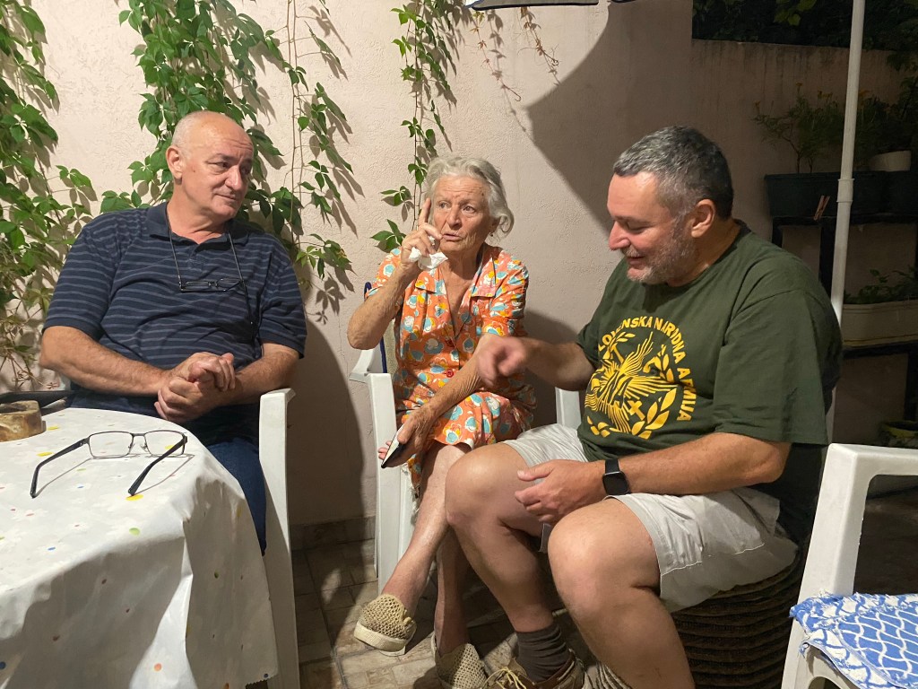 When we’d returned from Serbia the afternoon beforehand, we had a leisurely outdoor dinner with V’s visiting brother and three of his six kids. I was then able to capture some photos and video of one of my favorite moments of the trip: V with his mom and brother singing old Yugoslav folk songs on their mom’s front patio.