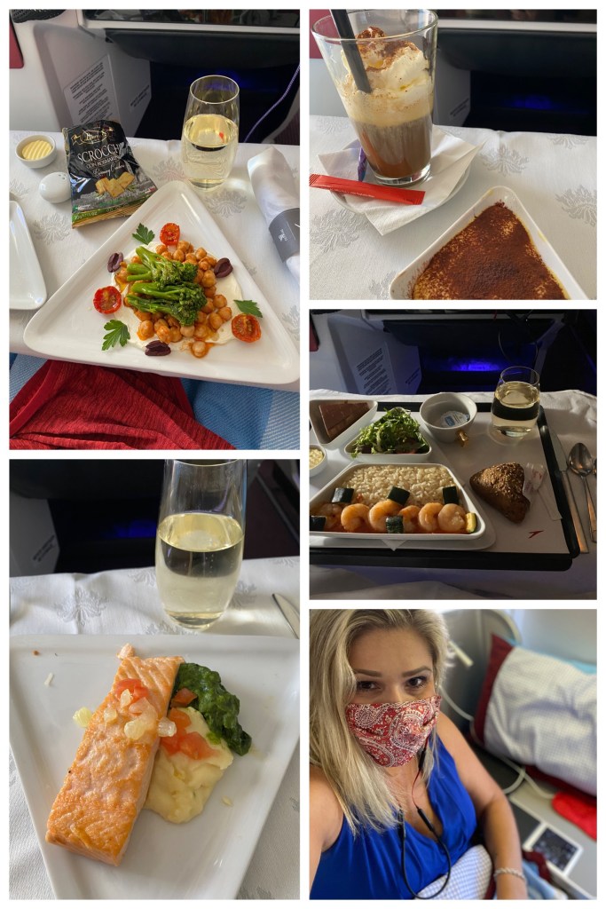 I almost opened my mouth to say I was fine, as I had just settled in and already felt lucky to have such a nice arrangement, when I looked beyond the curtain to where he was gesturing and realized – the food, the films, the unlimited champagne. I could lay flat! (Really, doesn’t it seem when it rains it pours? It’s the times you can already swing your legs out and hardly touch the wall when you get an empty seat beside you, and then get upgraded to boot, whereas when you’ve put on a couple extra pounds, the person next to you is spilling into your space and the jerk in front of you decides to recline.)
