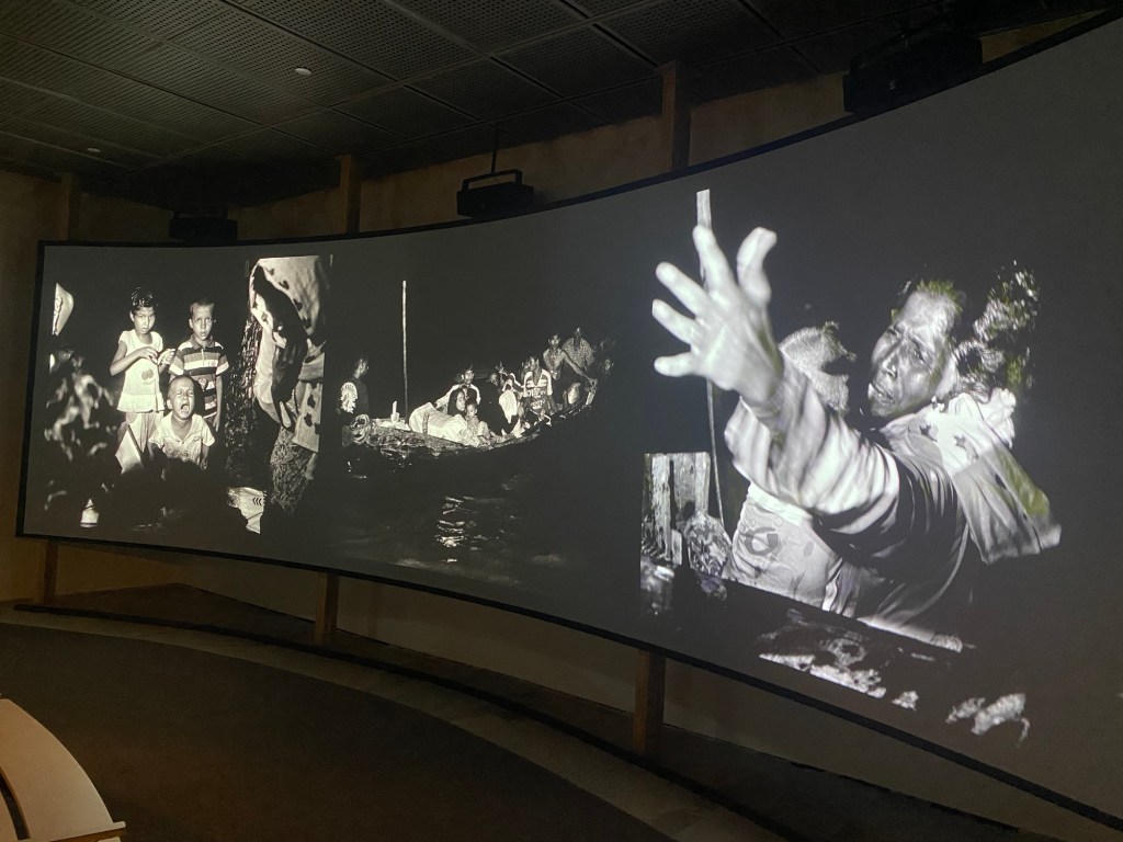 I was unaware until I saw the exhibition the full extent of the way Rohingya people in Burma have been systemically marginalized, stripped of citizenship, and forcibly removed from their homes not just recently, but over several decades. Rohingya people living in Burma predate the establishment of the (current) colonial borders between Burma and Bangladesh, yet, have few rights or legal recourse when displaced from jobs and community.
