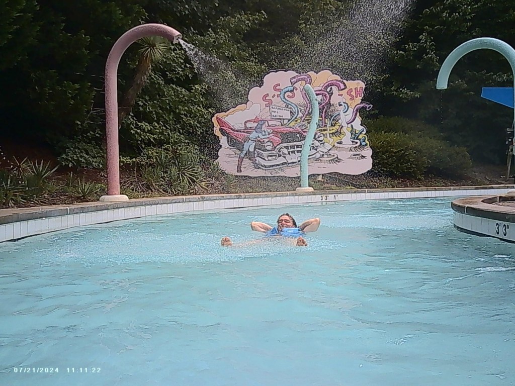 The good news is that the park wasn’t crowded the one day so far we’ve visited in 2024. I attribute that to a lucky break in the heatwave and overcast skies. But it was still very warm and humid and the cold water was a shocking relief.