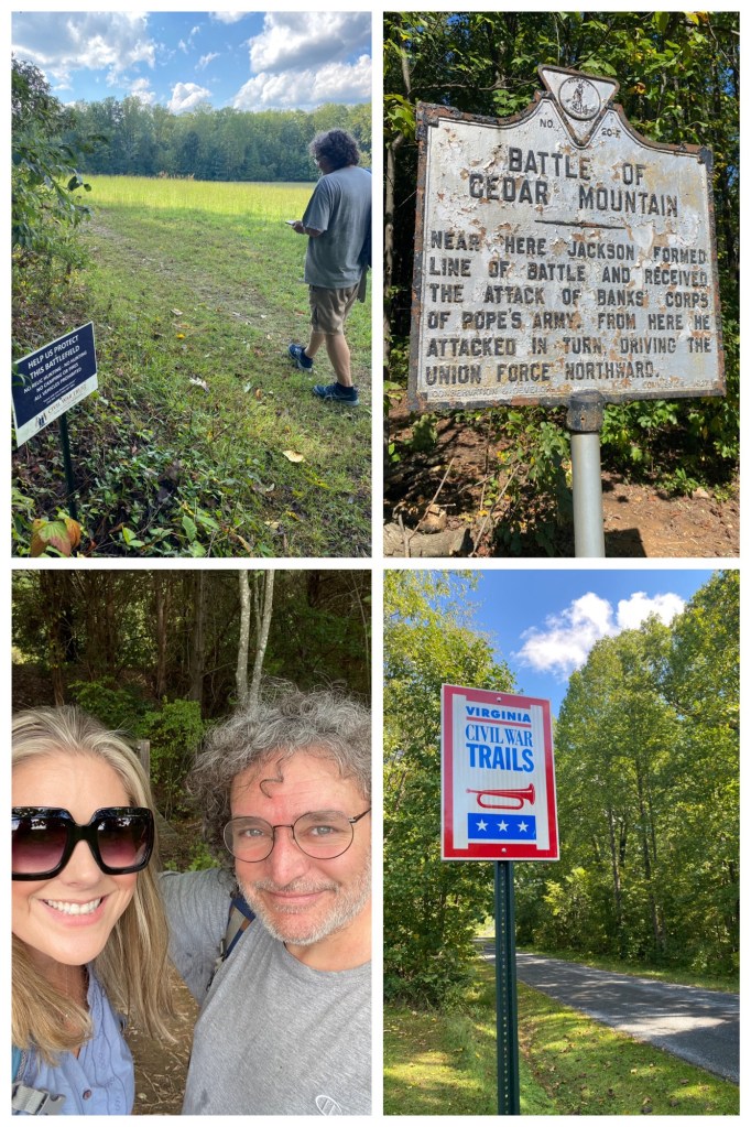For our wedding anniversary in September 2024, V organized a day trip for us to visit Virginia’s newest state park, Culpeper Battlefields State Park (CB) and the nearby historic town of Culpeper. The park is so new, in fact, it isn’t yet on the Trail Quest drop-down menu to register your visit. I notified a ranger via email of our visit, and he told me to hang in there for the website update.
