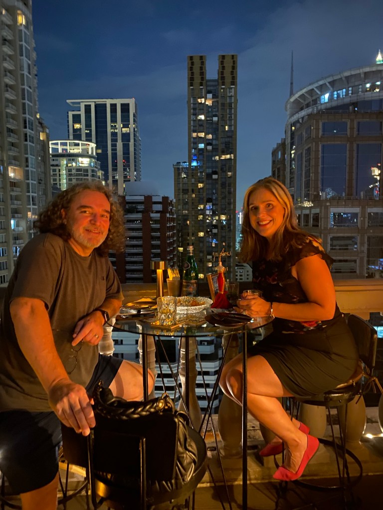 We flew the short distance to Bangkok and easily caught an airport taxi into the city. Less than an hour later, we were checking into our hotel. We weren’t hungry, having enjoyed some delicious tea leaf salad at the airport before leaving Burma. Instead, we headed up to the hotel’s speakeasy-style rooftop bar for a nightcap — the same bar I’d visited with my friend and A-100 classmate K during my brief trip in 2016. He was posted in Bangkok at the time and had shown me around the city.