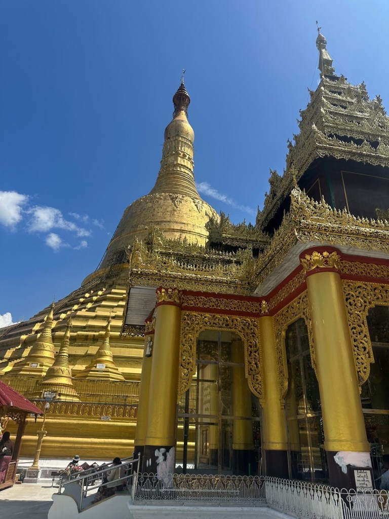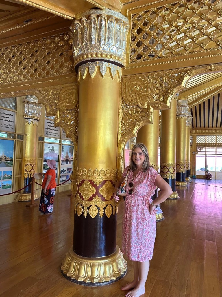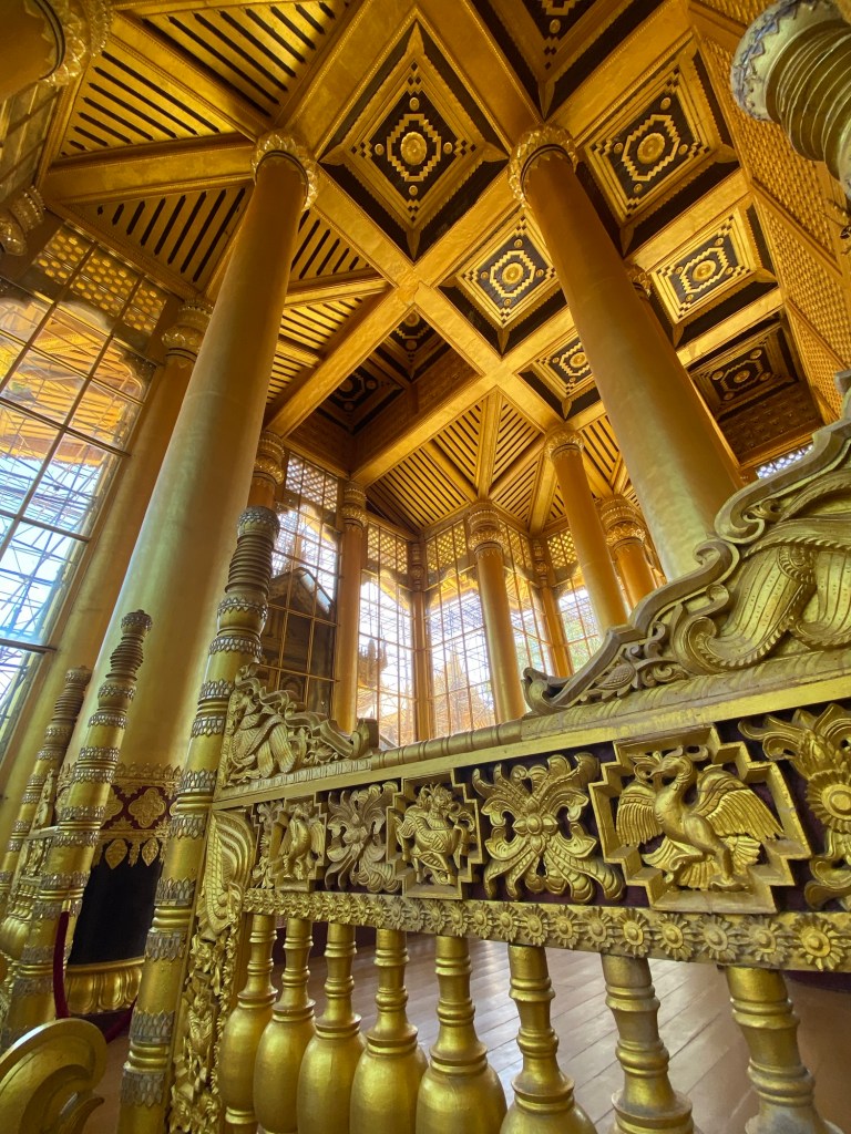After we left the palace, we stayed on the grounds, driving a short distance away to Bhammayarthana Throne Hall. Bhammayarthana previously served as King Bayinnaung’s royal bed chambers. Although they were located within an easy walking distance of less than 10 minutes, it was incredibly humid and we were being pushed along a little hurriedly by the CLO who had her eye on the schedule. So we climbed all the way back into the van, and two minutes later we climbed all the way back out again. The chambers looked incredible and full of gold…as I assume one would want one’s royal bed chambers to be.