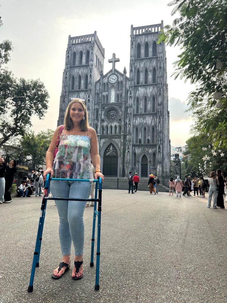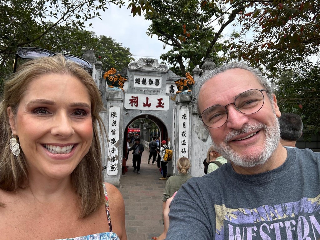 We were picked up at the Hanoi airport arrivals area by a hotel driver. As we sped our way towards the bright lights of Vietnam’s capital, we felt happy and lucky to be there. The streets surrounding our accommodation were so crowded the van couldn’t approach, and we had to walk the last two blocks — accompanied by hotel representatives who met us on the sidewalk and hauled our suitcases and my wheelchair.