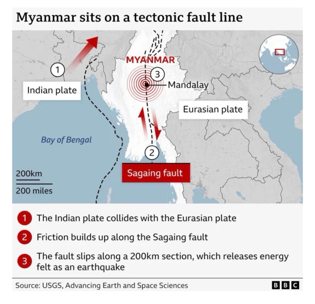 A nearly 750-mile long fault line cuts through the middle of the country, and the 2025 earthquake happened near its heart: in Mandalay.
